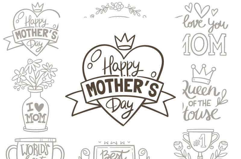Este clipart pertenece a una pequeña colección de etiquetas dibujadas a mano con mensajes para felicitar a todas las madres por su día. Puedes ver y descargar la colección al completo en este enlace.